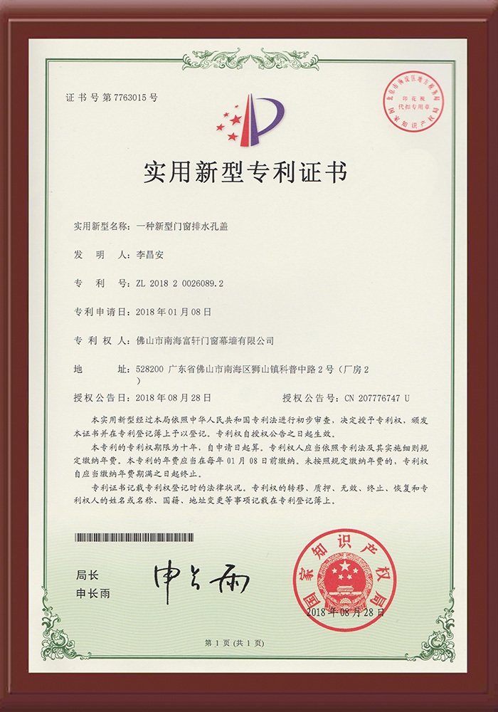 超100项发明成果富轩门窗拥有规模超1200㎡的研发中心,研发团队90余人,超100项发明成果、其中自动防夹门和三防推拉窗获得国家发明专利,匠心创造,只为精品。