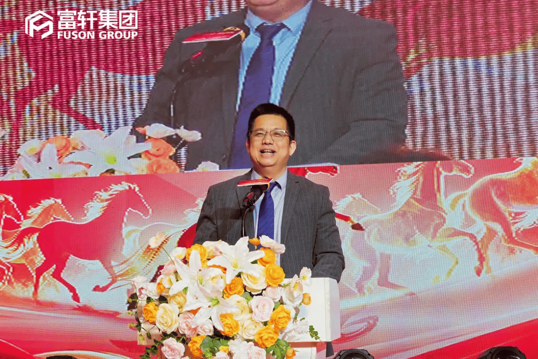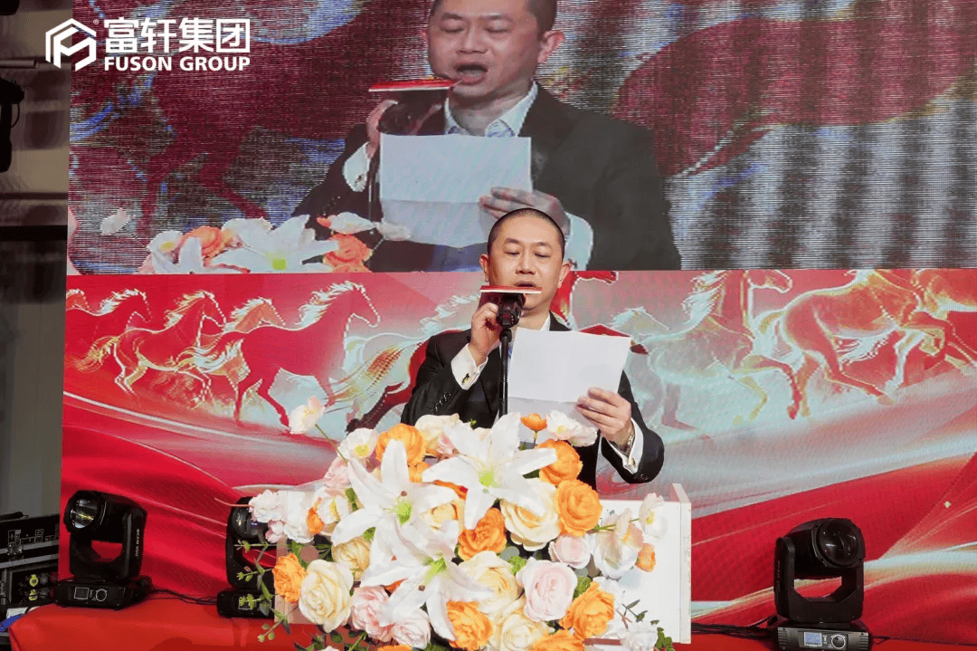 随后,富轩集团李董发表新春致辞,深情回顾了过去一年集团在各业务板块的丰硕成果,向每一位并肩作战的富轩家人、合作伙伴致以诚挚感谢。同时李董以“万马同窗,共跃新程”激励在场每一位伙伴坚守初心,以“匠心”为魂、以“创新”为武器,共谋发展,在全球市场中持续拓展版图。