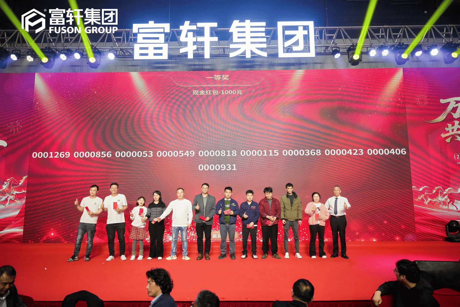 除了精彩的节目,激动人心的抽奖环节更是让现场惊喜不断、欢呼声此起彼伏,百余项大奖依次抽出,丰厚的现金奖励让每一位幸运儿们喜笑颜开。一波波惊喜将晚会气氛不断推高。这不仅是对员工一年来辛勤工作的答谢,更是富轩集团注重员工关怀、打造幸福企业的温暖实践。最终,年会在主持人的温馨结束语与全体工作人员的合影中圆满落幕。