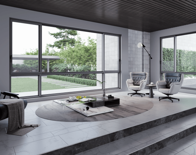 型材上可以选择原生铝,外表精细有光泽,密度高,制成门窗整体结构强度好,耐腐蚀性佳,可以保障推拉门的性能表现。玻璃上可以选择夹胶玻璃,安全隔热隔音,即使是发生自爆也不会有玻璃碎片掉落,很好的保护家居安全使用。