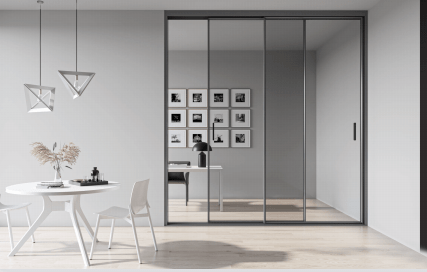 厨房隔断可以选择玻璃推拉门,选用玻璃材质通透、明亮,让室内得到更好的采光。富轩全屋门窗匠心打造三代极致艺术两轨吊趟推拉门,流畅线条勾勒极简家装风格。上轨选用优质防摆轮,灵活顺滑、牢固安全。精巧的防跳轨装置,能有效防止推拉门滑脱以及防误操作,开关少噪音,安全系数高;门扇边框极窄设计;侧面45mm、可视面11mm,搭配条形拉手删繁就简,还原生活本真;内嵌式外框、使门扇与框融为一体外观更精致、采光面积更大。