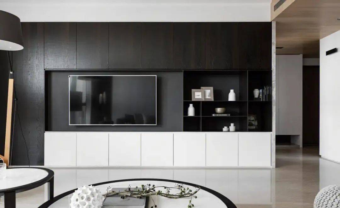 虽然说电视的功能正在逐渐被弱化,但是暂时来说不会被完全取代。在空间的布置上,背景墙被赋予了多种功能,收纳式的背景墙让客厅生活变得更加从容,尤其是小面积户型,可以见缝插针地将电视墙的空间利用起来,既简洁又实用。