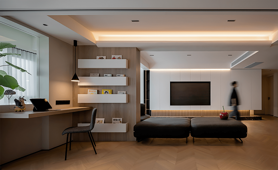 在小面积的住宅内,每一寸空间都显得珍贵。而开放式客厅设计能够打破空间阻碍,让空间更为宽敞通透,视觉延伸感更强,更显大,既保证了空间和视觉的和谐统一,也让家居空间的设计有了更多的可能。
