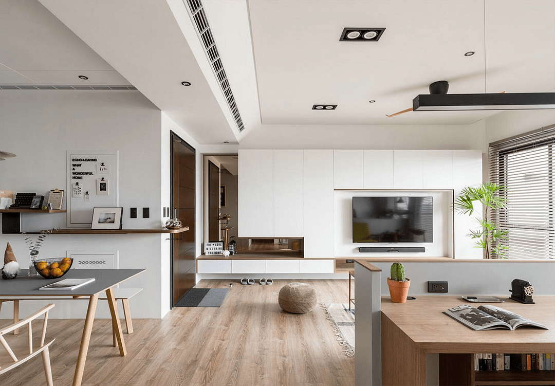 所谓开放式布局,就是打破传统的以墙为分割的空间区分方式,取而代之以玻璃、屏风,矮柜或者完全打破传统布局方式,比如餐厅和客厅合二为一,仅以吊灯不同作为区分,将客厅和书房合二为一,让书柜和电视柜一体化等等。