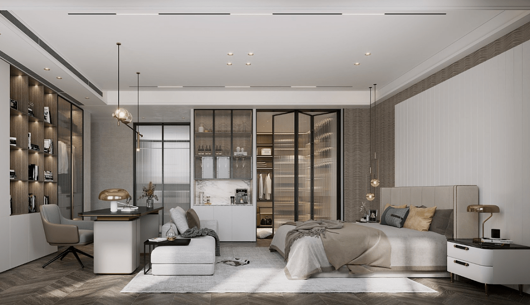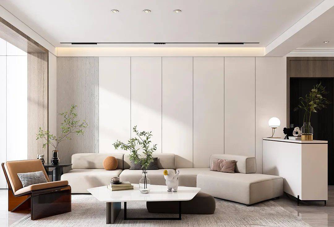 灯光的设计可以不拘一格,无主灯的光源没有限制,常用光源有筒射灯、线性灯带、磁吸轨道灯等。很多的无主灯方案,还会用传统的台灯、吊灯、壁灯等,增加空间灯光的设计感和层次感,应该根据空间布局进行合理的规划和调整。