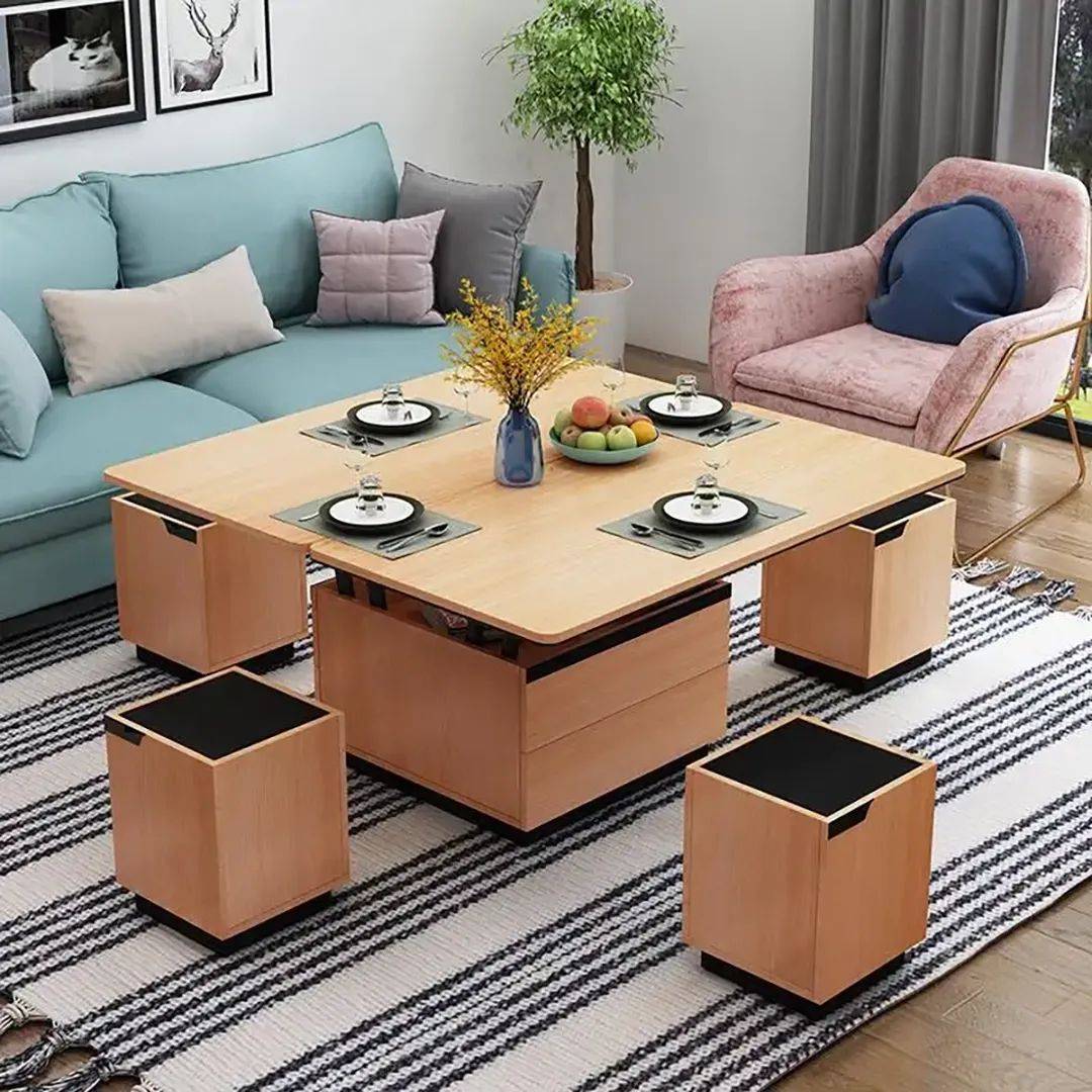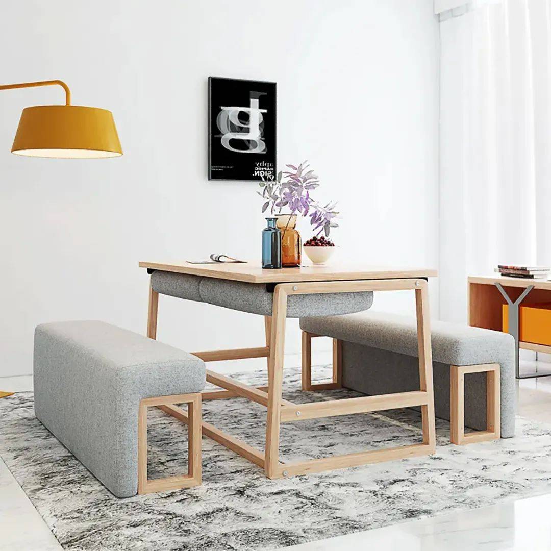 如可折叠的餐桌,用时展开,平时则收起来,非常方便;带有储物功能的沙发可以存放杂物,让客厅更加整洁;书桌和柜子一体化的设计,线条流畅,现代气息十足......这些多功能家具不仅节省了空间,还增加了实用性,堪称“小户型利器”。