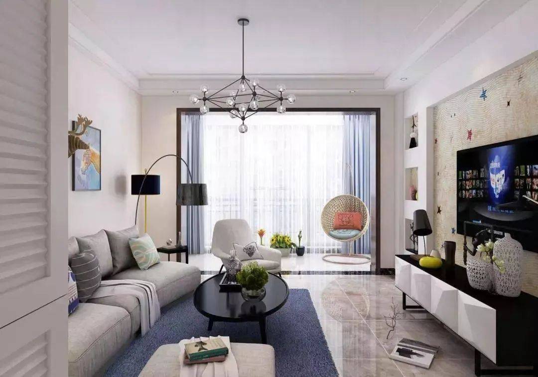 为了充分利用小阳台的空间,可以将阳台与室内客厅打通,创建阳光休闲角落,再安排一扇超大全景落地窗与外界隔开,配上飘逸的窗帘,在阳台放上沙发、凳椅、花木盆景,别有一番情趣。