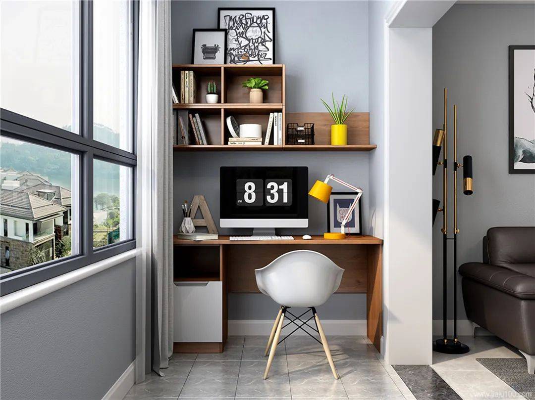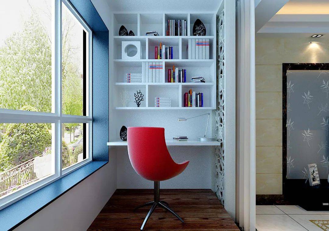 吾心安处是书乡,阳台可以改造成阳光书房,封上阳台,摆上一桌一椅一书架,打造成一个合适的学习区域,在悠闲午后,远离外界滋扰,遨游书海世界,得到阳光的轻抚,畅享安静时光。