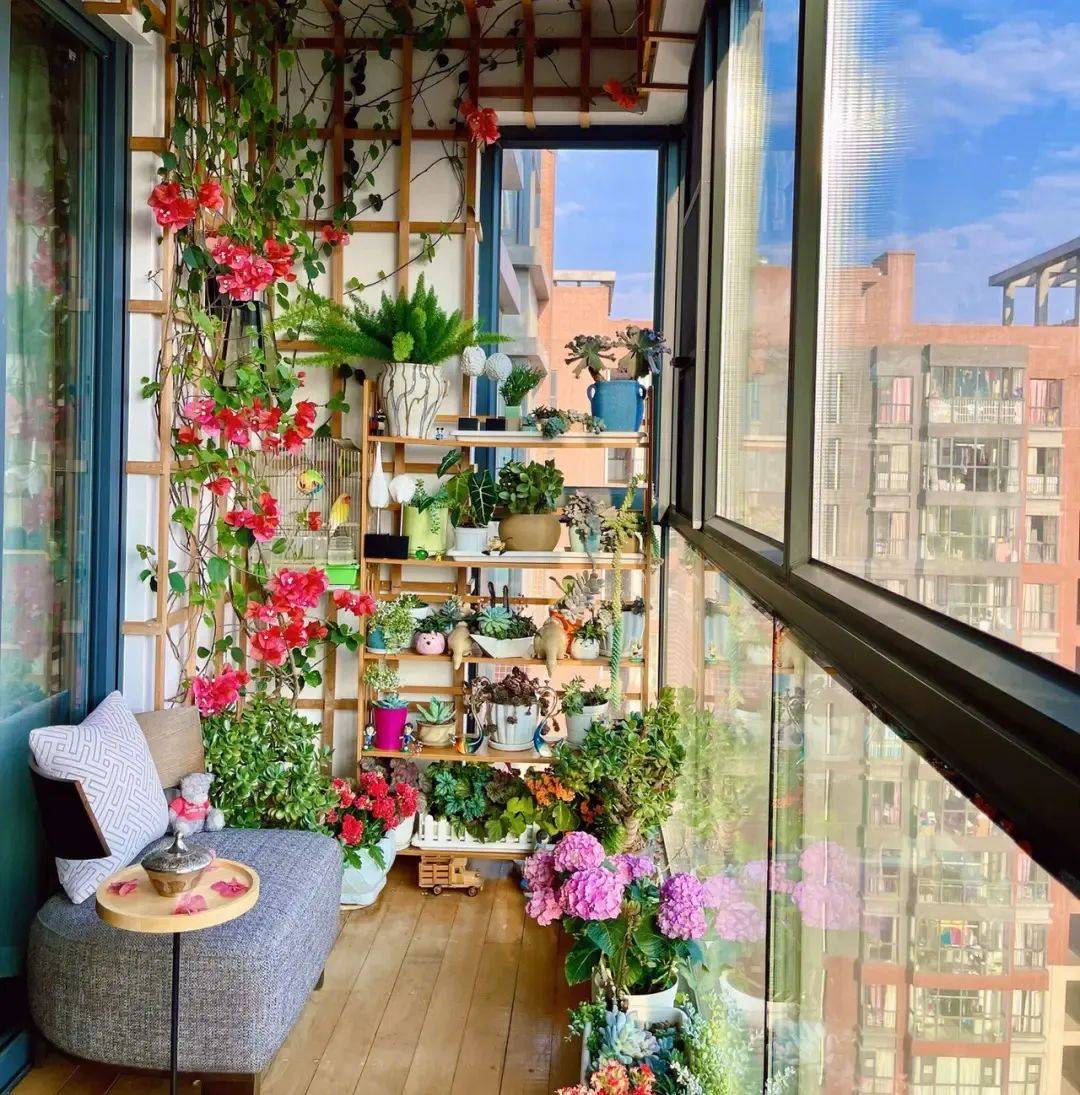 阳台可以变阳光花园,封上阳台、培育温室花朵,为家营造一个充满花香四溢的小天地。有温暖的阳光照射,再加上植物的加持,再小的阳台也会平添几分生机,在家就能欣赏四季花卉,尽情享受悠悠慢生活。