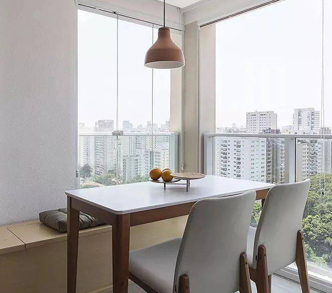 阳台做餐厅是当下流行的趋势,借着窗外的好风景为生活增添一点情趣,平时用个早餐开启美好一天,或是周末午后泡杯清茶或咖啡、看本书、撸撸猫、眺望远方城市的风景,好不惬意!