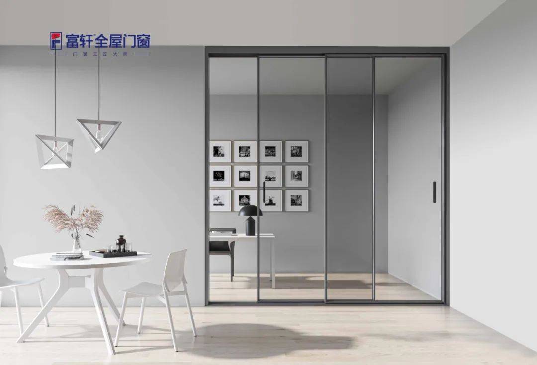 富轩全屋门窗极简艺术推拉门系列有单轨、双轨、三轨三种不同形式可供选择,横向平移式推拉,开启中门扇不占用室内空间,合理利用空间。简约大气的设计,时尚百搭的颜值,轻松驾驭各种家装风格。