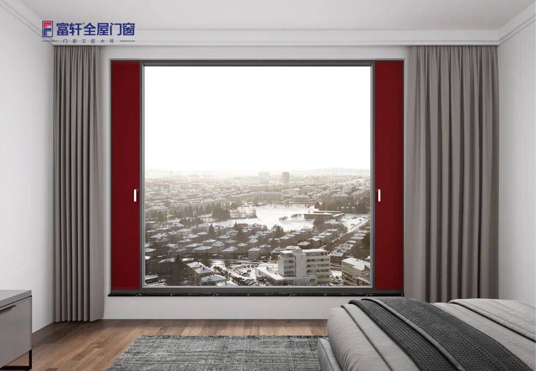 卧室要营造隔音良好的睡眠环境,同时还要有一定的隐私性,可以选择三层中空玻璃+断桥铝平开窗的窗型,在隔热隔音上具有不错的表现。还可以搭配富轩全屋门窗智能调光玻璃,智能一键控制调光玻璃,夏挡光冬透光。