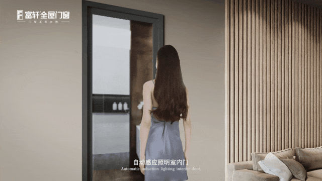 卧室门还可以采用富轩全屋门窗红外感应门框,在夜里起居的时候,再也不用摸黑找开关,做到人到灯亮,人离灯熄,安全节能。