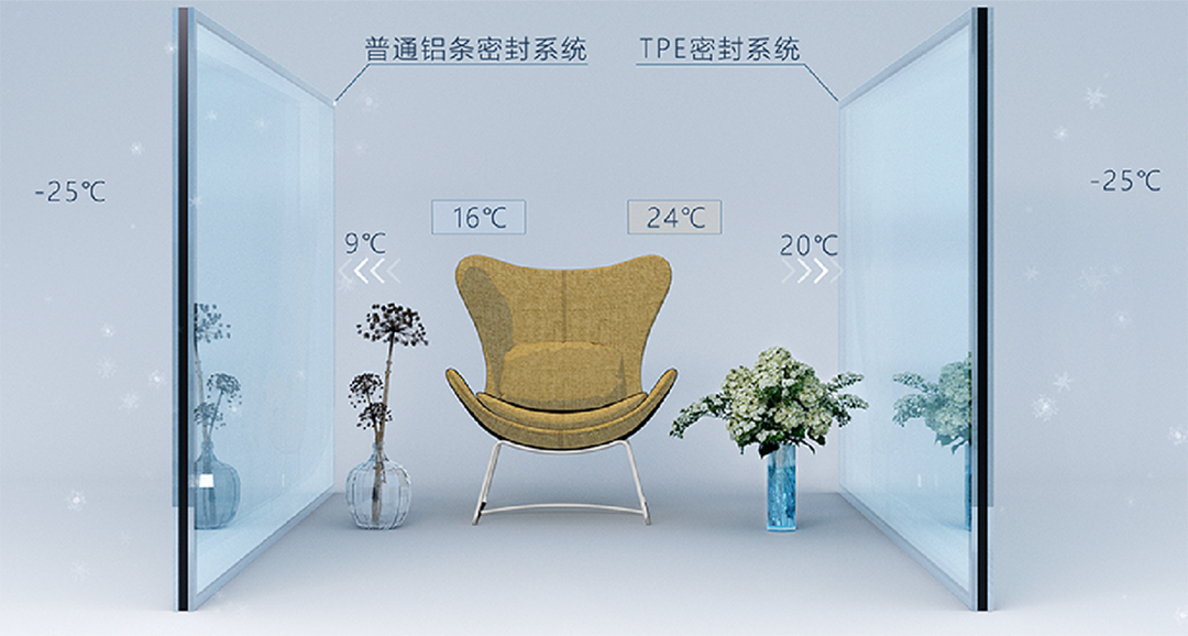 还可选择三玻两腔、TPE4SG超能中空玻璃、Low-e 中空玻璃等,还可以加厚玻璃厚度、加厚中空层、填充氩气等,增强整体的保温隔热效果;大幅度提高整窗的保温隔热性能。