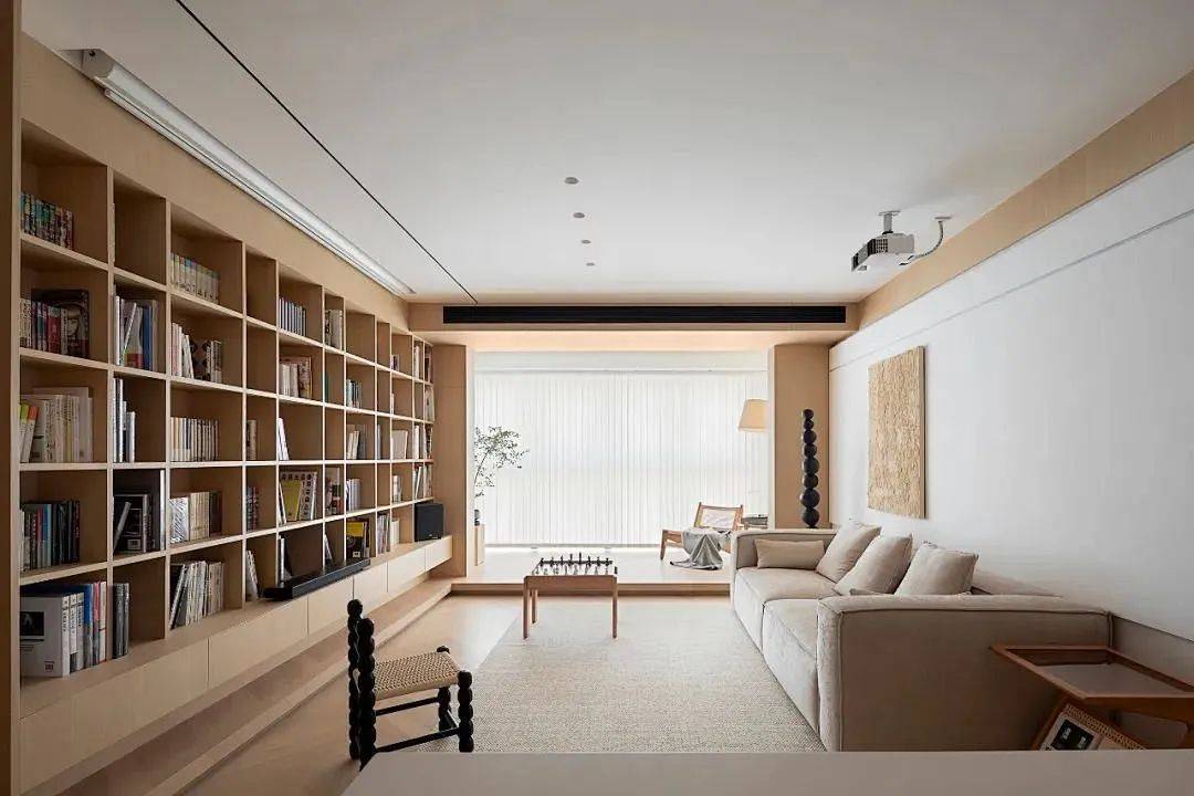 客厅+书房的装修思路,在于弱化了传统客厅的存在感,让客厅变成以书房为主的家庭互动空间。客厅可以是一个阅读区,让你在静谧的午后享受阅读的乐趣;也可以是一个工作区,让你在家也能高效地完成工作。