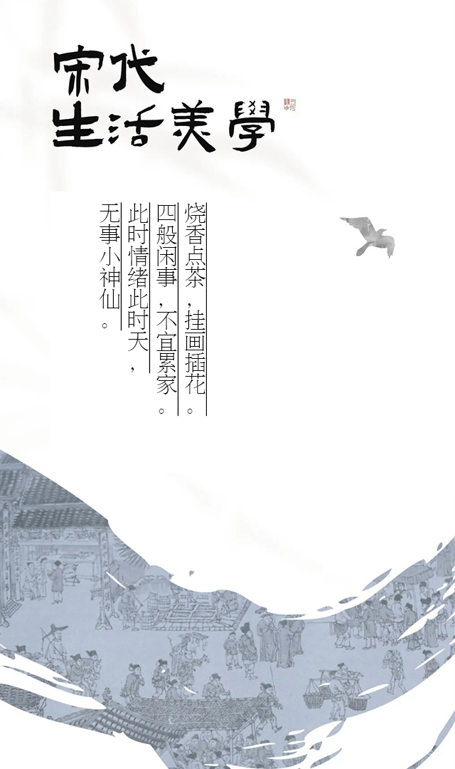 宋代高度繁荣的商品经济与精湛的工匠建造技艺,宋人对衣食住行、歌舞宴会、书法绘画、节俗交际等日常生活的方方面面有着更高的追求,「点茶、焚香、插花、挂画」......没有一个朝代比宋朝更懂生活、更懂美。