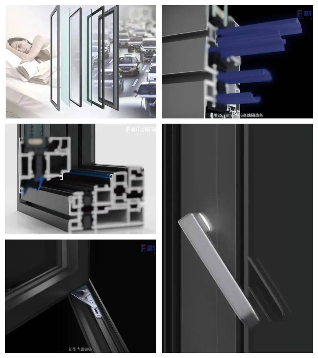 富轩全屋门窗采用航空级原生铝材,强度高、抗腐蚀,保障了门窗的稳固耐用,型材内部采用垂直等温线设计,更有效减少热量传导。