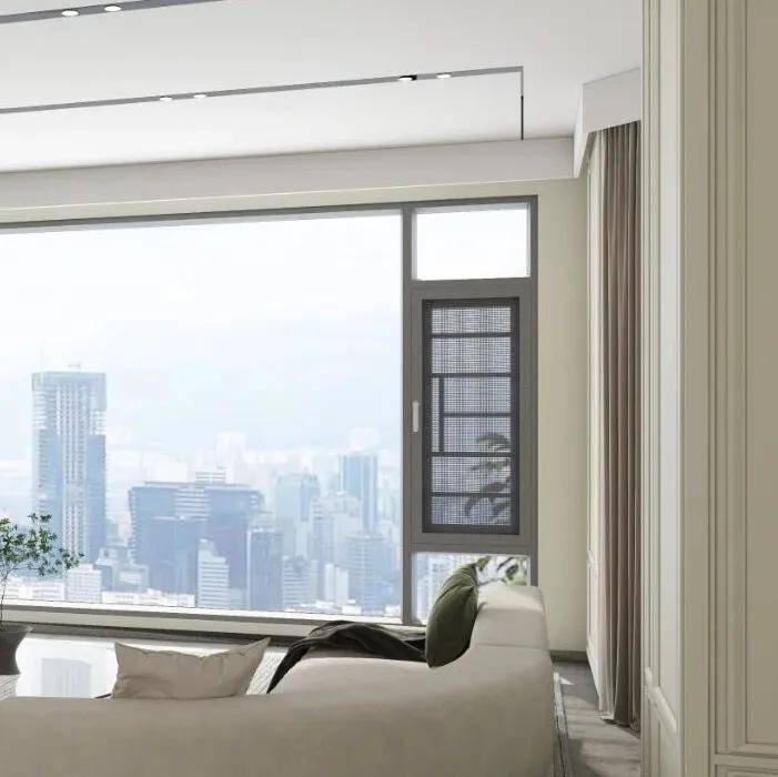 高透纱网,以高透光和强通风成为现在的主流隐形纱窗,表面柔软有弹性,透光率极高,窗外清晰可见,且能轻松阻挡蚊虫入侵,清洁也十分便捷,对于视野和通风需求高的客厅、观景阳台是极佳的选择。