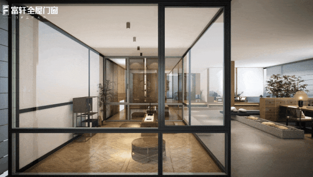 玻璃隔断既不用担心阻挡光线,也能清楚区分不同功能区域,如厨房油烟味重,隔断必不可少,将非承重墙换成玻璃推拉门,烹饪时关闭隔绝油烟,日常敞开也能让餐厅与厨房融为一体,采光、通风两不误,富隐MT16百变推拉门轻松将厨房与客厅隔断,左右推拉启闭,不占用过多空间,让每一次烹饪都没有串味和手忙脚乱的负担。