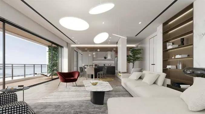 而窗户也拥有34mm极窄玻扇的富隐MTS15全景推拉窗,让窗外景色接近无遮挡般占据视觉中心,搭配嵌入式隐扇设计,窗户不再只是墙上的洞口,而成为连接内外世界的透明界面。